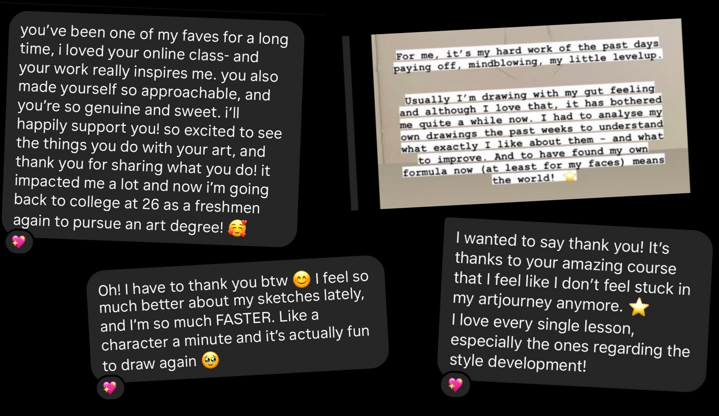You will leave with an endless stream of ideas so you never run out of things to draw, and a style you love drawing so much that you cant wait to draw each day.